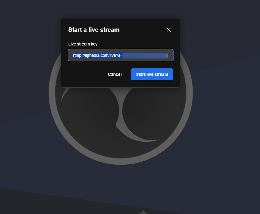 If you are using the Live Meetings system that is built in click on the RTMP URL+ Key option and when you click go live in the meeting replace the existing stream key it has with this one you just copied.