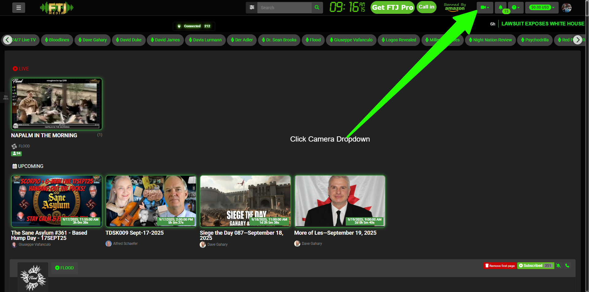 After you buy FTJ Pro & your email is verified, click the camera icon: